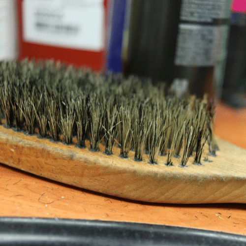 鏡とヘアブラシで身だしなみを整えます。
